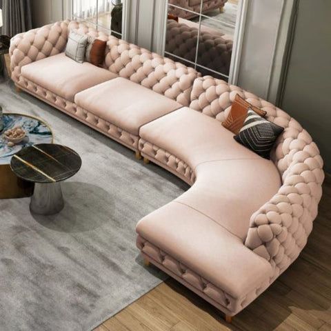 2. Iconic Chesterfield Detailing: Embrace the classic elegance of Chesterfield design with deep button tufting, creating a luxurious and timeless aesthetic. The seamless integration of traditional elements with a modern curved form makes this sofa set a statement piece in any room.