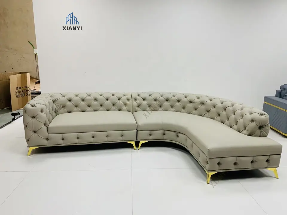 1. Contemporary Curves: Immerse yourself in the allure of modern design with our Curved Upholstered Chesterfield Sofa Set. The gentle curves of the silhouette add a touch of sophistication, creating a focal point that effortlessly complements any contemporary interior.
