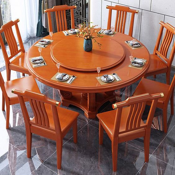 - Embrace the classic appeal of a round dining table, fostering a sense of togetherness and inclusivity. The rounded shape creates a warm and inviting atmosphere, perfect for fostering conversation and shared moments.