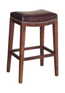 Embrace simplicity with a classic saddle-shaped wooden bar stool, offering timeless design and comfort for your bar area.