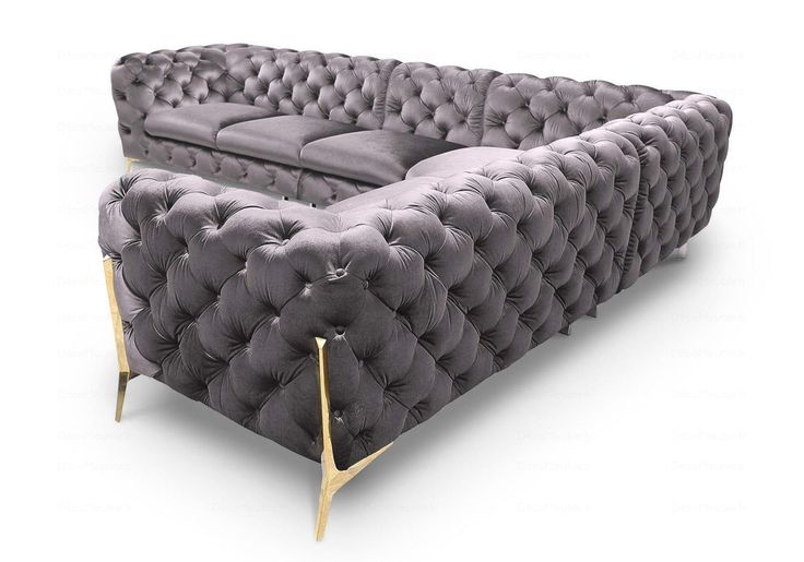 The L-shaped configuration offers a contemporary take on the classic Chesterfield look, while the light grey fabric provides a fresh, updated feel. Whether your décor is traditional or modern, this sofa fits seamlessly into any interior.