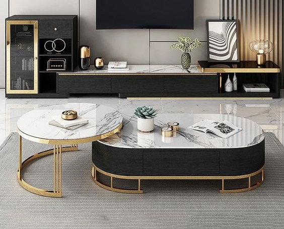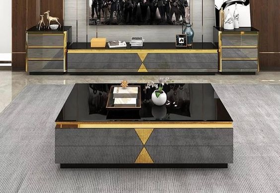Introducing the Brass-Framed TV Table and Center Table Ensemble, where timeless elegance meets modern functionality. This striking furniture set brings together the gleam of brass with sleek design elements, creating a sophisticated centerpiece for your living room. Perfect for those who appreciate luxury with a touch of minimalism, this ensemble offers both style and utility, transforming your space into an inviting haven.