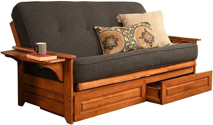 Wooden Frame Futon Bed with Storage Drawers