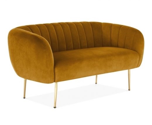 The sofa set comes in various colors such as rich neutrals, deep jewel tones, and classic shades, all enhanced by the gold accents.