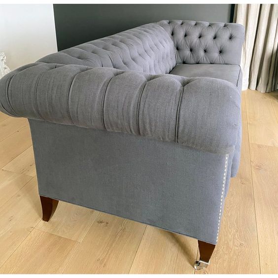 Grey Linen Tufted 2-Seater Chesterfield Sofa Call or whatsapp us on +256703402846 for more information