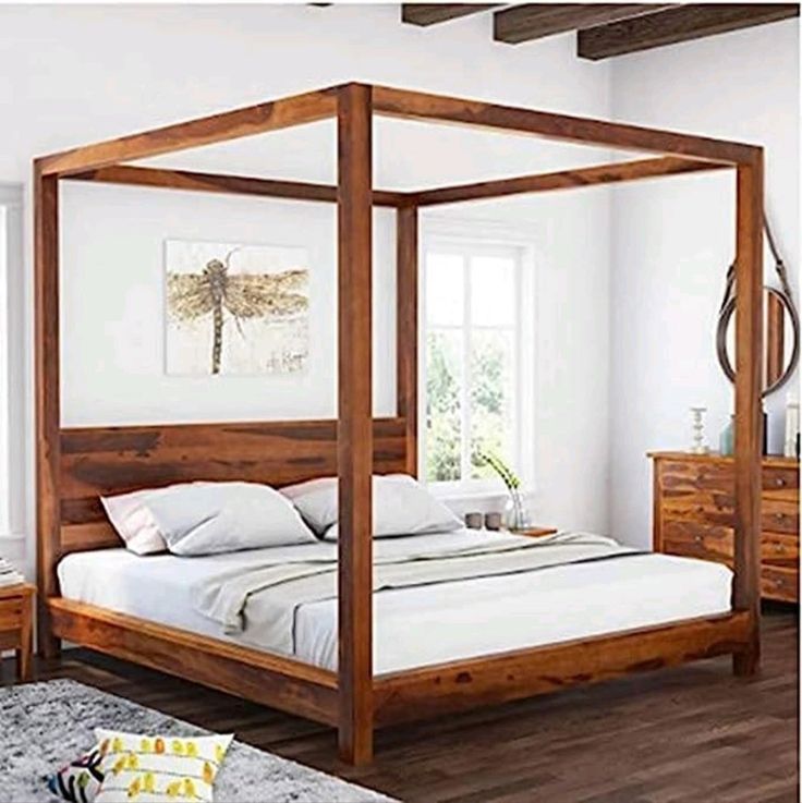 Rustic Teak Four-Poster Bed Call or Whatsapp Us On +256703402846