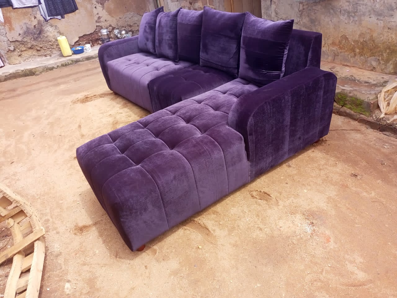 Velvet L-Shaped 5-Seater Sectional Sofaset Call or whatsapp us on +256703402846 for more information